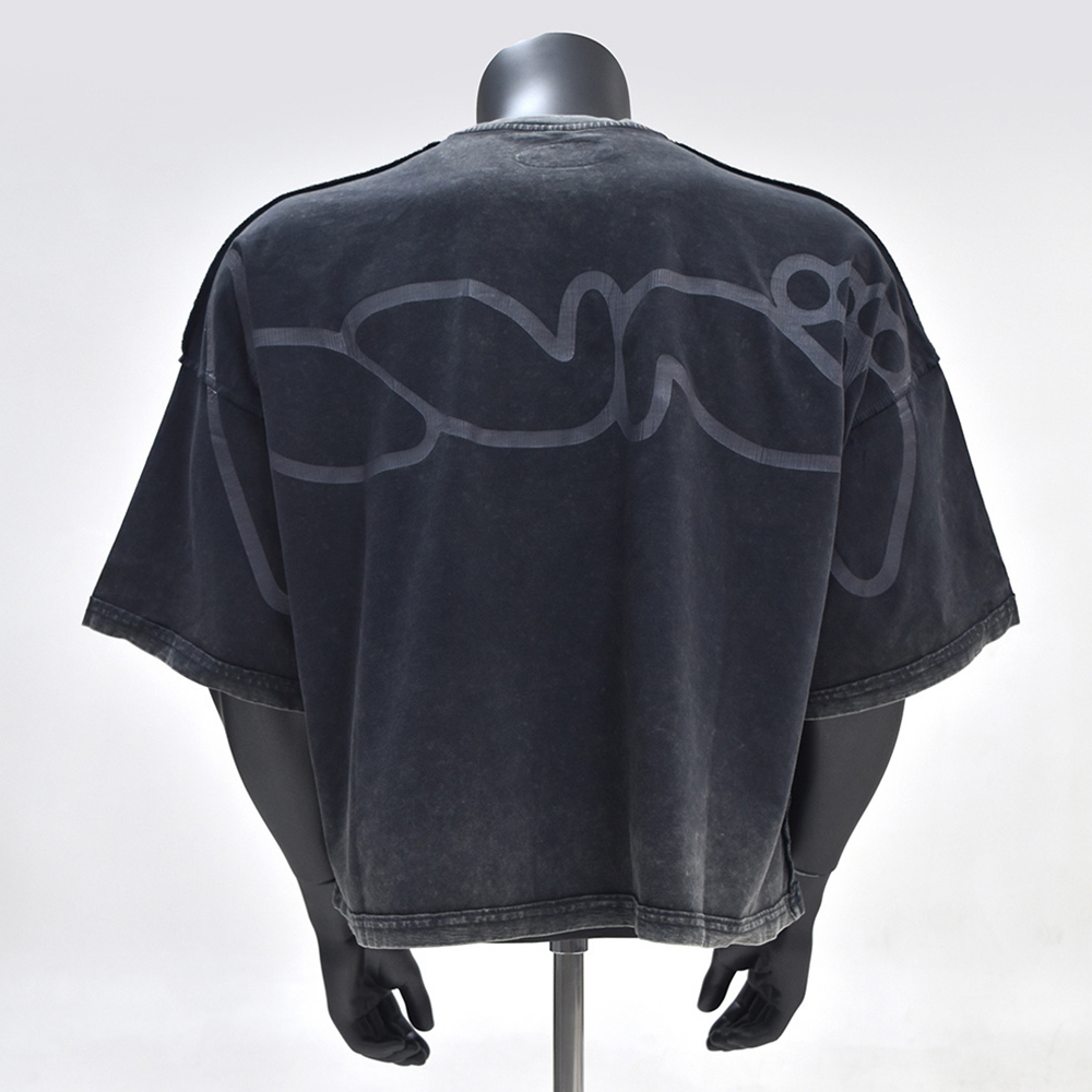 Yingling Boxy Fit T-shirt Drop Shoulder Reverse Screen Printed Short Sleeve TeeT65